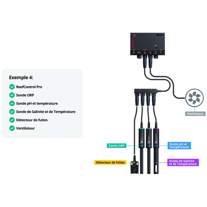 Komplettes Ökosystem: kompatibel mit der gesamten Produktpalette von ReefSense-Sonden und -Sensoren (pH-Wert, Temperatur, Salzgehalt, ORP, ATO, Lecksuchgerät usw.).
