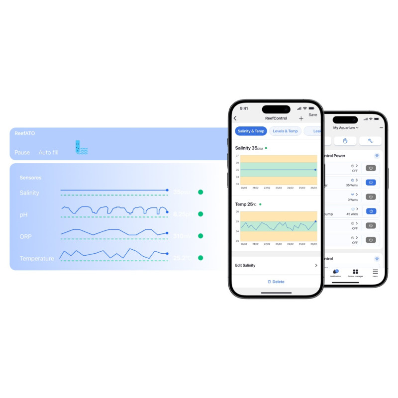 Vollständig in das ReefBeat- Ökosystem integriert, ermöglicht es Ihnen, Ihr Aquarium im Auge zu behalten, Ihre Geräte zu automatisieren und Echtzeitbenachrichtigungen zu erhalten, egal wo Sie sich befinden.