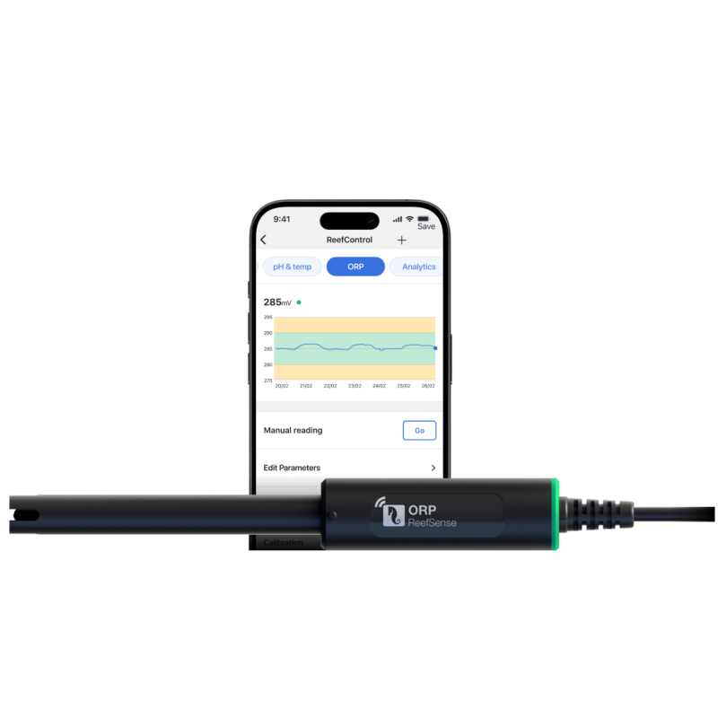 Die Red Sea ORP ReefSense Sonde kann an ReefControl Lite oder Pro Controller angeschlossen werden und ermöglicht die Echtzeitüberwachung des Redoxpotenzials, Benachrichtigungen und die Speicherung des Messverlaufs.